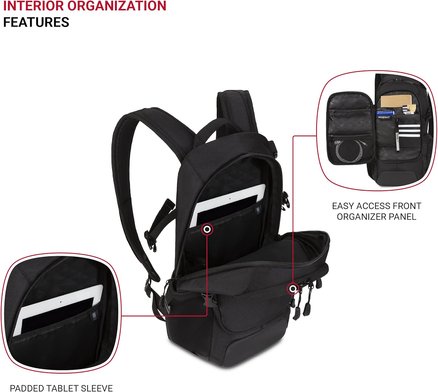 Crafted specifically for the urban commuter, the narrow SwissGear 3598 City Backpack has a deceptively spacious silhouette with an extremely low profile that is highly unobstructive on one’s back. With a front organizer panel and a designated tablet pocket, secure your devices and effortlessly retrieve them at the office or airport. Ergonomic shoulder straps and back Airflow panels accentuate its built-in comfort.
