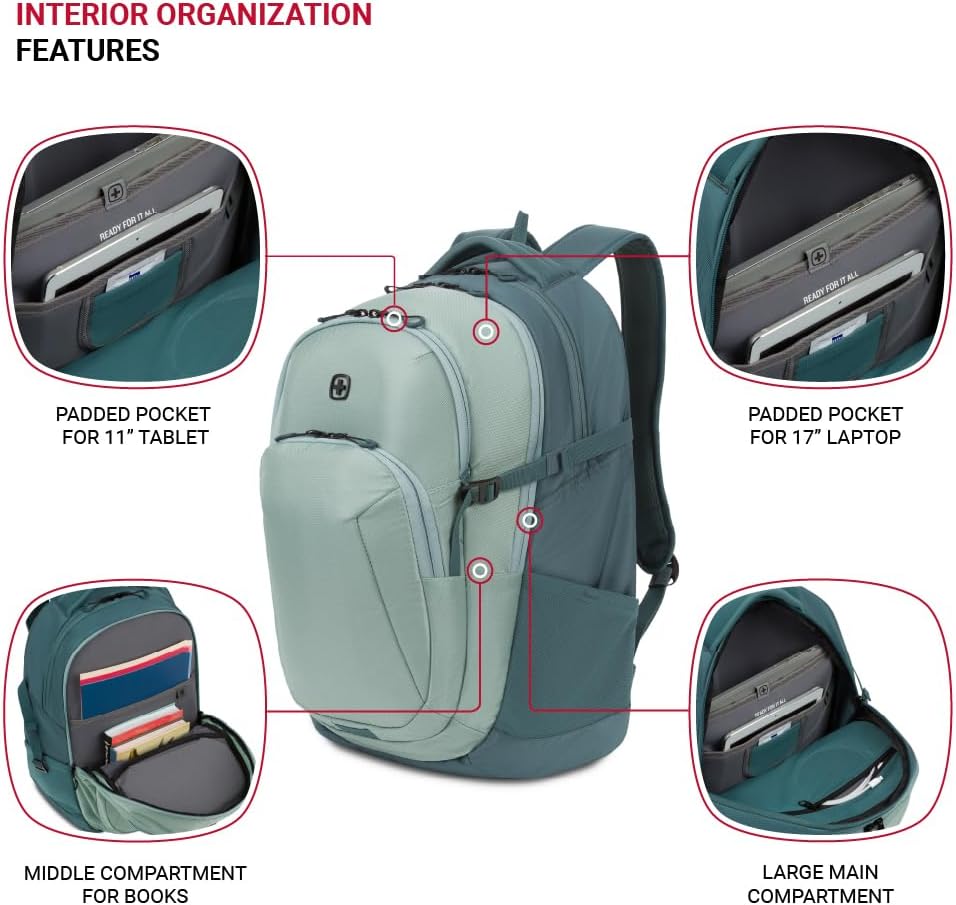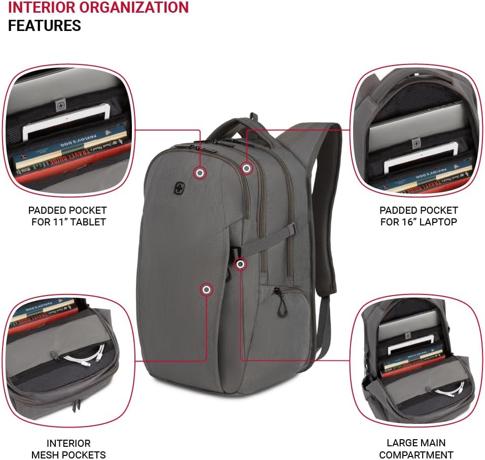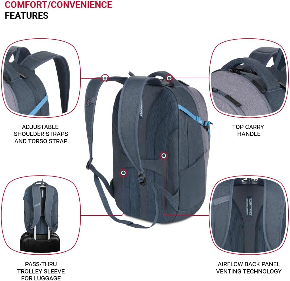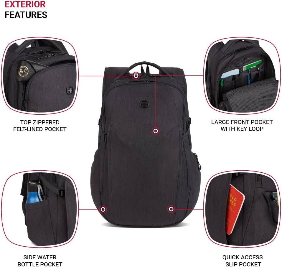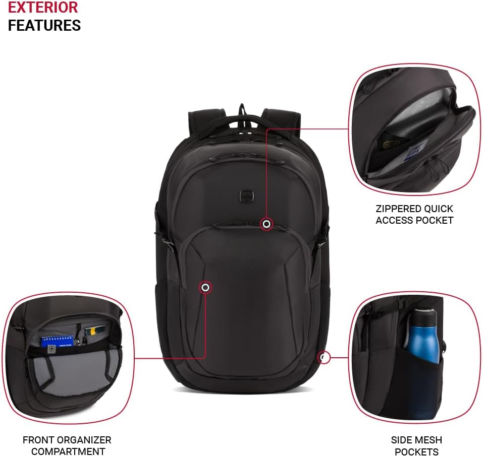 Are you looking for a versatile backpack that can keep up with your lifestyle? With built-in protection for your electronic devices and organization throughout, the SwissGear FlexCore Laptop Backpack Laptop Backpack gets top grades. This classroom and commuter backpack is built for loads of use with pockets for your books, laptop, work, and travel, tablet, electronic accessories, water bottles, and more. The padded back adds comfort. The perfect transport backpack, it even features a rear strap that allows you to stack it on a rolling bag for carrying freedom. This backpack is ideal for commuters, travelers, and students seeking convenience and style with enhanced organization.